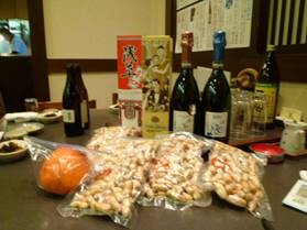 金川提供:銘酒「辛口浅草」、神谷バー「電気ブラン」、富士柿(参加者の藤垣に掛け