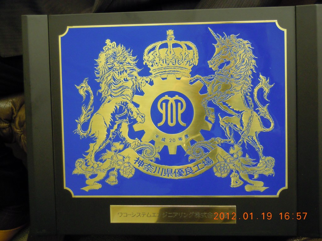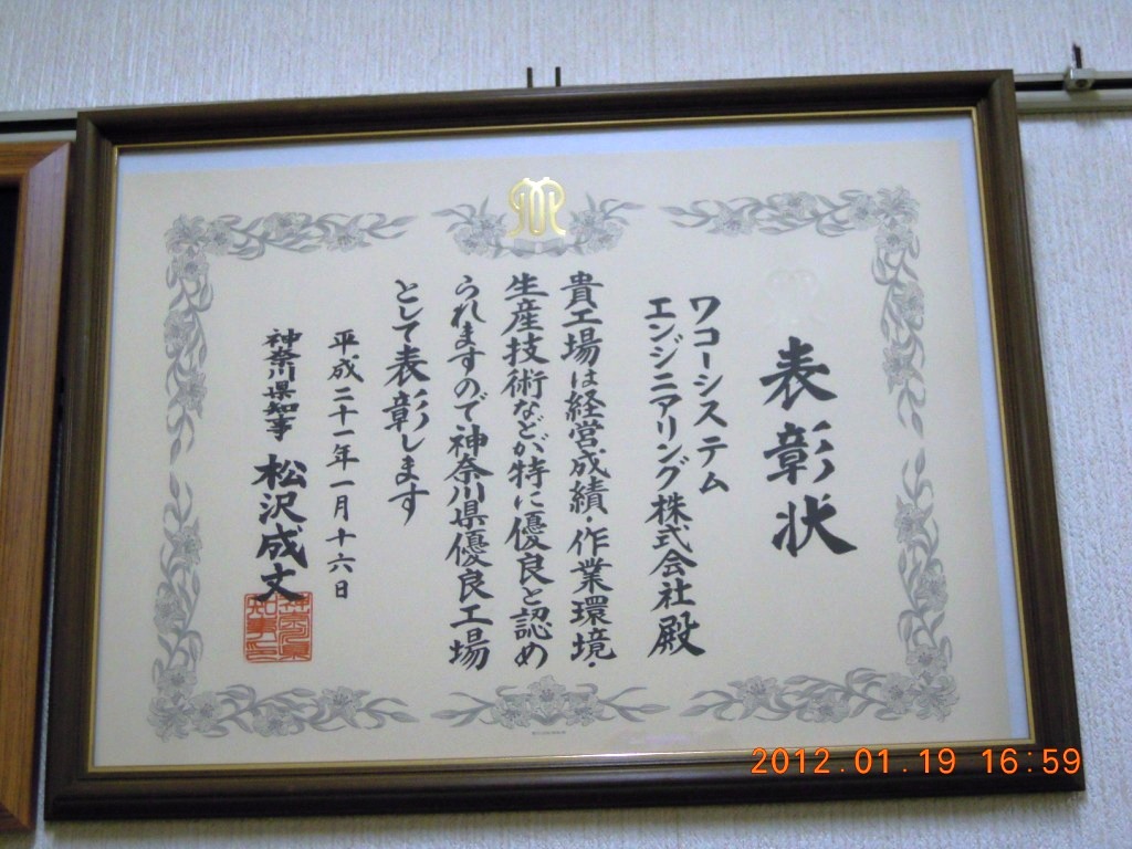 川県でわずか7社しか選ばれなかった優良工場に認定されています。その表彰楯と表彰状の写真を添付しました。